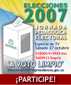 Para resolver las inquietudes de la ciudadanía sobre las elecciones del próximo domingo 28 de octubre, a partir de las 10:00 de la mañana de este sábado se realizará desde la Casa de Nariño una Jornada Pedagógica Electoral, con participación del presidente de la República, Álvaro Uribe Vélez; el registrador nacional del Estado Civil, Juan Carlos Galindo; el ministro del Interior y de Justicia, Carlos Holguín Sardi; el ministro de Defensa, Juan Manuel Santos, y Altos Mandos militares