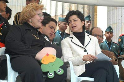 La señora Lina Moreno de Uribe dialoga con Doña Nydia Quintero de Balcázar, durante la Caminata de la Solidaridad por Colombia.
