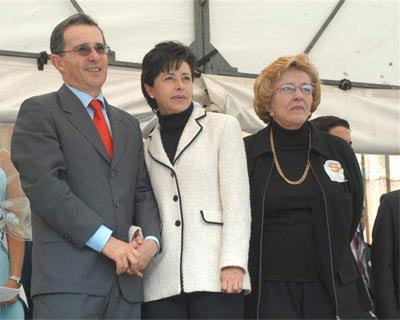 El Presidente de la República, Álvaro Uribe Vélez, y la señora Lina Moreno de Uribe acompañan a Doña Nydia Quintero de Balcázar, durante la Caminata de la Solidaridad por Colombia.