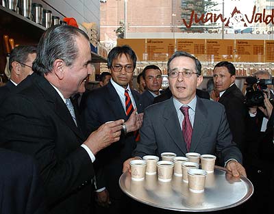 El presidente de la República, Álvaro Uribe Vélez, ofreció un café a los asistentes a la inauguracion de la tienda Juan Valdez en la calle 73 en Bogotá.
