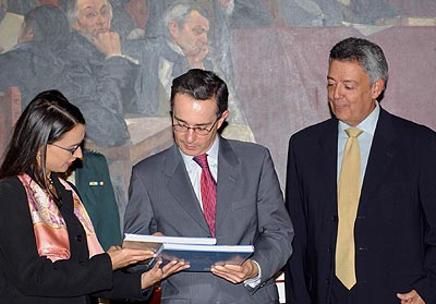 presidente de la República, Álvaro Uribe Vélez, la ministra de
