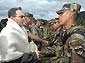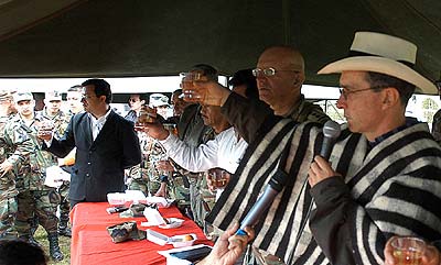 El presidente de la República, Álvaro Uribe Vélez, brindo con una copa de vino por el Año Nuevo en el Batallón de Alta Montaña No. 4. Foto: Miguel Angel Solano - SNE