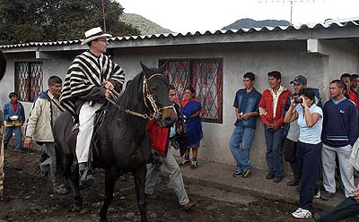 El presidente de la República, Álvaro Uribe Vélez, durante el recorrido por las calles del corregimiento de Valencia, municipio de San Sebastian. Foto: Miguel Angel Solano - SNE