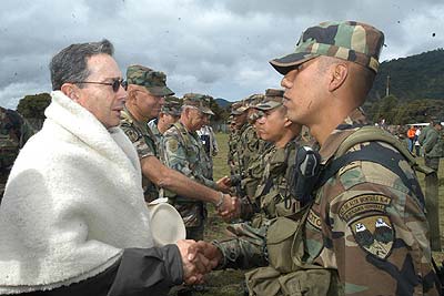 El presidente de la República, Álvaro Uribe Vélez, durante la despedida de Fin de Año, en el Batallón de Alta Montaña No. 4. Foto: Miguel Angel Solano - SNE