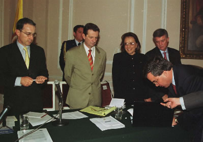 BOGOTÁ FEBRERO 28 DE 2003. El Presidente de la República, Álvaro Uribe Vélez, posesionó hoy a las 10 de la mañana al nuevo Ministro de la Protección Social, Diego Palacios