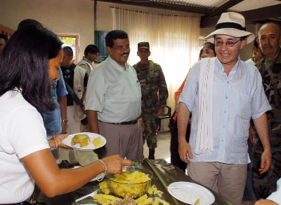 El Presidente de la República, Alvaro Uribe Vélez, aprovecho su visita a Putumayo para degustar los platos típicos de la región.