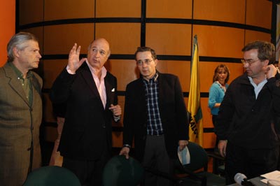 acompañado de Sabas Pretelt de La Vega y los ministros de