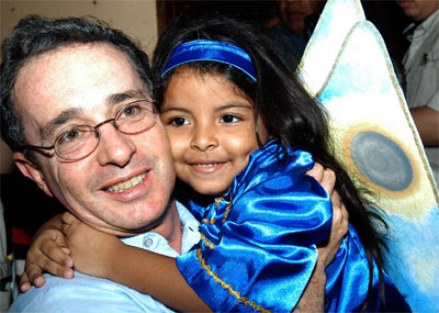 Durante la reunión con tenderos y microempresarios de la costa Caribe, el presidente de la República Álvaro Uribe Vélez tuvo tiempo para saludar a los niños presentes en el evento.