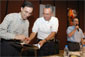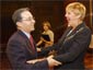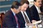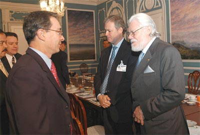 conversa con el senador Carlos Gaviria en momentos previos a la