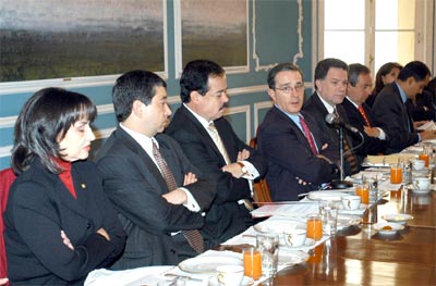El presidente de la República, Álvaro Uribe Vélez, se reunió con los senadores de la Comisión Primera para analizar el proyecto de alternatividad penal que estudia esa corporación.