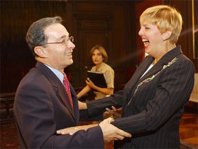 El presidente de la República, Álvaro Uribe Vélez, se reunió con la representante para los Derechos Humanos y Ayuda Humanitaria de Alemania, Claudia Roth.