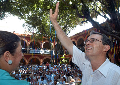 El presidente de la República Álvaro Uribe Vélez saluda a los estudiantes de la Corporación Universitaria Rafael Núñez de la capital de Bolívar.