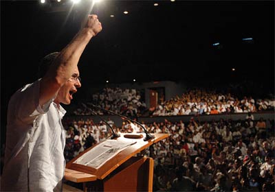 "Contra la corrupción, contra el terrorismo, por Colombia el referendo", dijo el presidente Álvaro Uribe Vélez a los asistentes al evento Colombianos por el Referendo capítulo Bolívar.