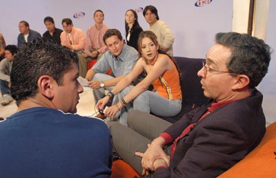 El presidente de la República Álvaro Uribe Vélez responde a los jóvenes colombianos todas las inquietudes acerca del referendo, durante la grabación del programa "En el 13" del Canal 13.