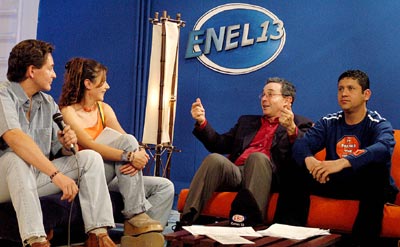 El presidente de la República Álvaro Uribe Vélez responde a los jóvenes colombianos todas las inquietudes acerca del referendo, durante la grabación del programa "En el 13" del Canal 13.