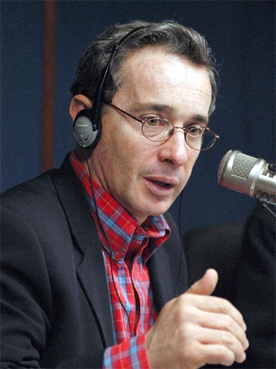 El presidente de la República Álvaro Uribe Vélez durante la emisión en directo del programa "6 am Fin de Semana" de Radio Caracol.