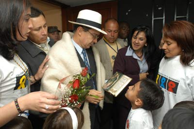 El presidente de la República, Álvaro Uribe Vélez, recibe el saludo del pueblo boyacense durante su visita a Tunja para participar en el encuentro de Colombianos por el Referendo.