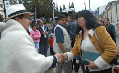 El presidente de la República, Álvaro Uribe Vélez saluda al pueblo boyacense durante su visita a Tunja donde participó en el encuentro de Colombianos por el Referendo.