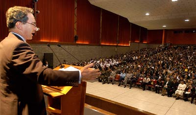 Intervención del presidente Álvaro Uribe Vélez durante su visita a Tunja donde participó en el encuentro de Colombianos por el Referendo.