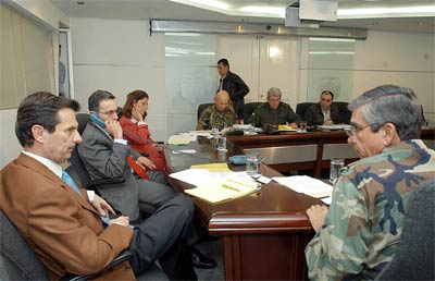 Fernando Londoño y la Cúpula Militar, durante un Consejo