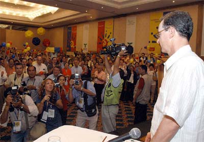 El Presidente de la República, Álvaro Uribe Vélez, durante la clausura del Congreso Nacional de Comerciantes Fenalco 2003.